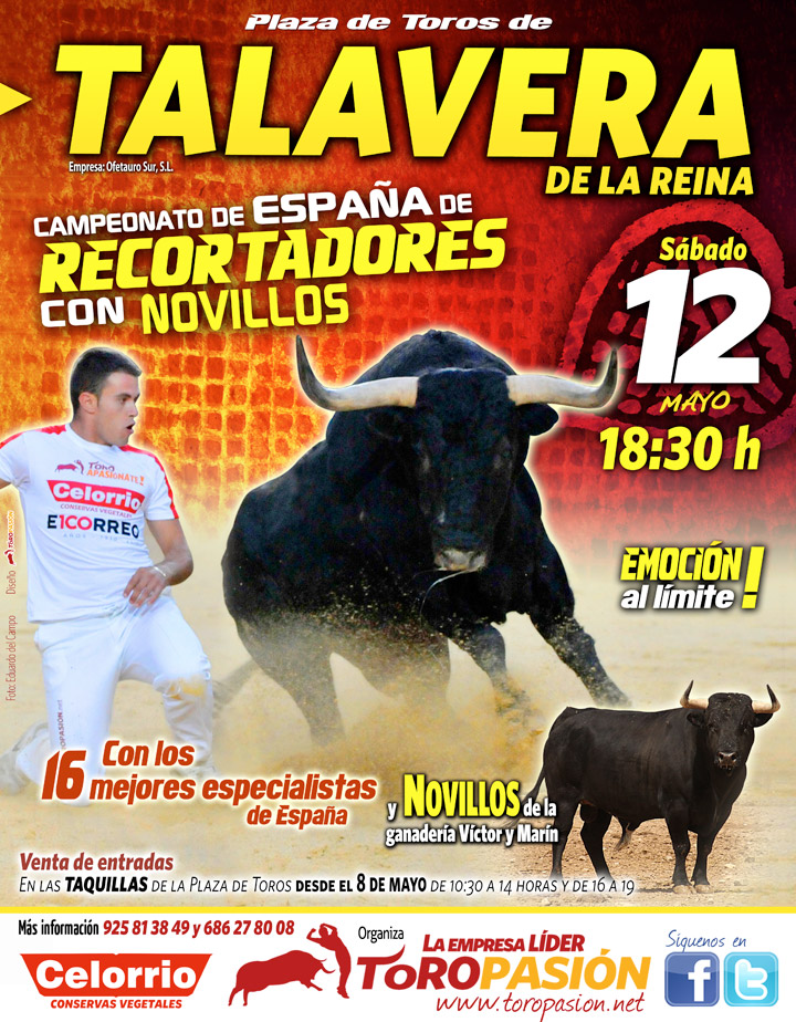 La empresa Ofetauro Sur, S.L. junto con Toropasión Espectáculos ha hecho un esfuerzo importante para trasladar la segunda semifinal del prestigioso Campeonato de España de recortadores hasta la toledana localidad de Talavera de la Reina. El Campeonato de España es la competición de toreo a cuerpo limpio más importante de nuestro país y reúne cada año a los mejores exponentes de las diferentes modalidades de enfrentarse a un toro a cuerpo limpio. En esta edición la primera de las dos semifinales tuvo lugar en la plaza de toros de Castellón en plena Feria de La Magdalena. En esta ocasión será Talavera de la Reina el lugar de celebración de la segunda cita de esta reconocida competición.
