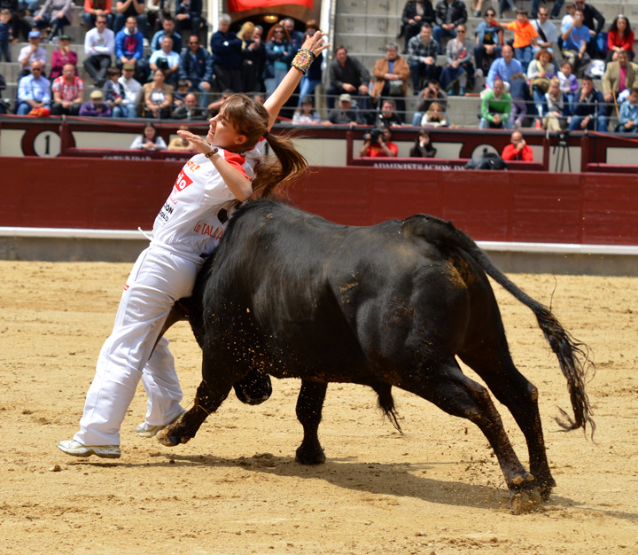 Sara Mota, del grupo Arte de Mujer, realizando un ajustado corte en Las Ventas