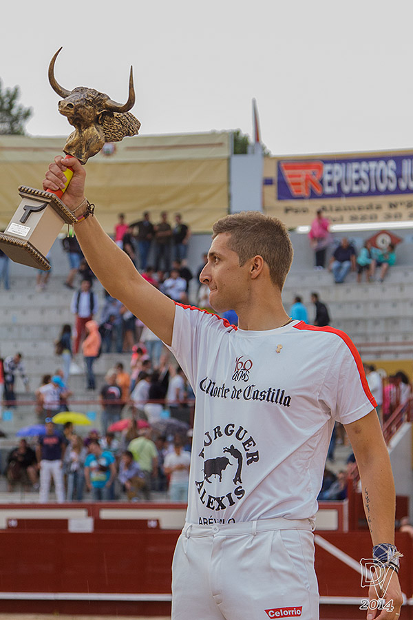 Se llevó el trofeo el madrileño Javier Santander ‘Gusy’, docto en templanza y sencillez, en valores que dignifican una pureza por momentos olvidada en la Liga que premia las cosas bien hechas. O que deberían hacerse. Así que el argandeño de rostro angelical cogió toda su cintura y toreó con una abrumadora sencillez al astado de la final, como esas verónicas ‘apauladas’ que acostumbraba a recetar un Julio Aparicio que ayer estuvo presente en el ruedo a través de las reses que llevaban su hierro de ganadero. Cien por cien puro, ni un pero. Citó con verdad, dio la ventaja al animal, se fue a por él y bailó con el pitón en su axila con la parsimonia de quien se toma un café. Lo de los aspavientos no va con él. Ayer tampoco lo fue. En la sencillez encuentra su aliado, casi ni arqueos le hicieron falta. Fue un dios meciendo los riñones, el mesías de la templanza así en la tierra como en el cielo.
