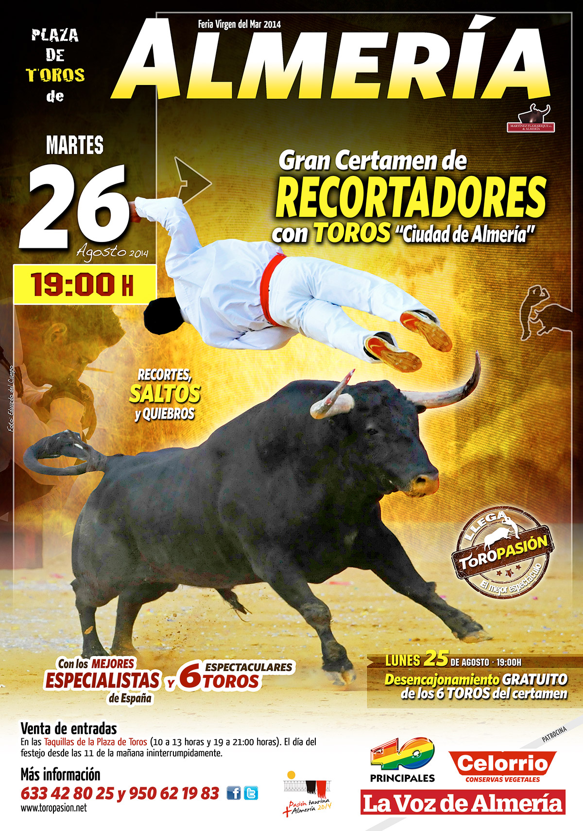 Este evento contará con la garantía de la empresa Toropasión Espectáculos, entidad que gestiona los concursos de recortadores más importantes de la península -entre ellos el de Las Ventas, Castellón, Salamanca, Zaragoza, Bilbao y Logroño-. La llegada de Toropasión marcará el ritmo de un festejo que destacará por su calidad y espectacularidad y para el que se ha realizado un importante esfuerzo para desplazar hasta Almería a algunos de los mejores exponentes del toreo a cuerpo limpio.