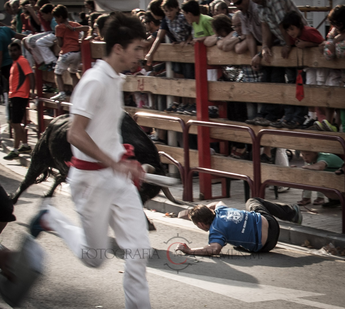 Preciosas las carreras de algunos mozos ante los astados. Foto: Carmen Meroño.
