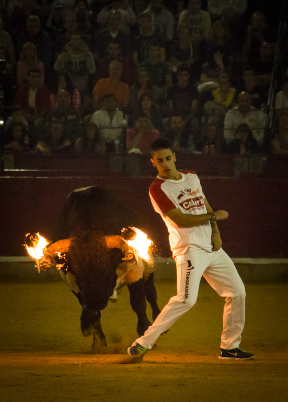 El concurso de recortes con toros embolados a fuego ofreció momentos espectaculares.