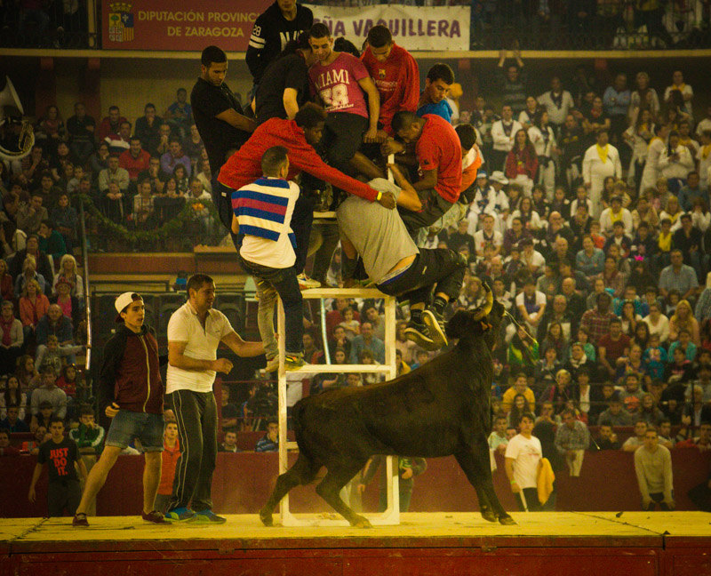 Emoción, valor y espectáculo son los ingredientes principales de una de las mejores ferias de festejos taurinos populares, la del presente año, que se recuerdan en la plaza de toros de Zaragoza. Ayer finalizó el ciclo de festejos populares que Toropasión ha puesto en marcha del 5 al 13 de octubre y por el que han pasado las figuras del cuerpo a cuerpo con el toro en sus diferentes modalidades: anillas, recorte libre, roscaderos, emboladores, forcados, especialistas landeses y una variedad de tauromaquias que han revolucionado a la afición maña.