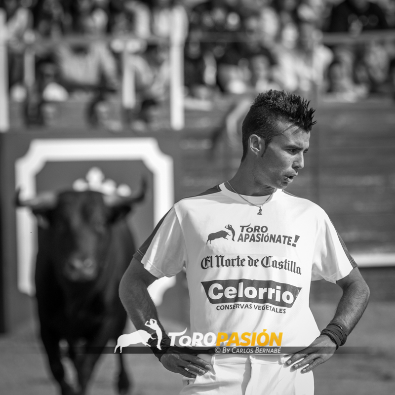 Al tercero no fue fácil lidiarlo. De exquisita nobleza y ni un ápice de maldad en la embestida, ofrecía un buen tranco en el embroque, aunque había que tragar su arrancada casi andando. Volvió Sergio García ‘Tororo’ a sonreír en la cara del animal, cuando le pudo enjaretar un par de cortes de los de disfrutar en la cara del toro. Lo del cuarto, de pinta guapa, y bruto en su comportamiento, fue otro cantar. La pulcritud del corte la compusieron mano a mano Jesús Sánchez ‘Zazo’, medinense que rubricó un tercer embroque de acuarela, y un Javier Santander ‘Gusi’ que marcó todas y cada una de las pautas de la definición de corte puro. Sin aspavientos, con una tranquilidad pasmosa, el argandeño citó ayudado por su mano. Dio la ventaja al animal con un temple exquisito y ajustó con un toreo apaulado en su cintura. No era fácil lidiar al explosivo animal, de arrancada brutal, y Gusi le consiguió templar y amortiguar. Tan sencillo como inadvertido para una gran parte del graderío.
