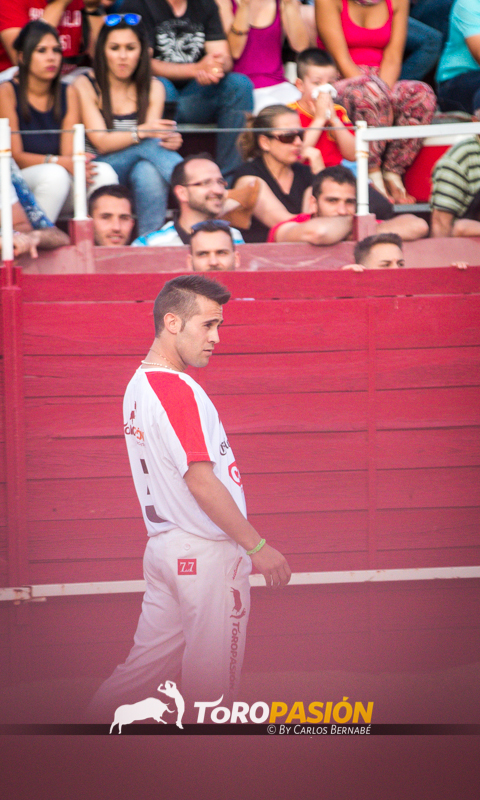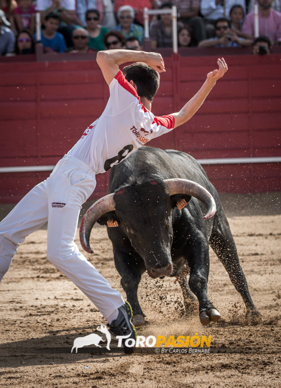 El Corpus de Benavente aguardaba a Roberto Vidal como sus riñones a ‘Escapadito’. Se arrancó como un tiro el sobrero de Esteban Isidro (devuelto el titular de María Cascón por descaderarse), tanto que en el momento justo del embroque, y tras rozarle un brazo, cayó al suelo el de Villavicencio por la inercia de la fuerza. Se levantó y salió airoso. Aquello era un clamor. Era el segundo corte de la final, pero para Benavente ya había ganador. Roberto Vidal caminaba por el callejón aclamado por los espectadores, que ovacionaban su paseíllo alrededor de la plaza. Era cara o cruz. Porque tanto Vidal como su compañero y amigo zamorano Dany Alonso habían afilado espolones en una pelea de gallos milimétrica, una batalla por alzarse con el título de campeón de la primera fase de esta Liga del Corte Puro 2015. Tanto quiso ajustar Dany Alonso el embroque que el de Esteban Isidro, con una culata que metía miedo, enmorrillado, serio y hechuras de toro, se lo llevó de calle en el tercer y último corte. Pitonazo en su menudo muslo y corte bis, más holgado. La balanza se inclinó de nuevo hacia un Roberto Vidal que escuchaba su nombre coreado en las gradas. ‘Rober Vidal, lo lo lo lo lo’ y un ‘eh, eh, eh’ al compás de su cite no se descompusieron al chaval vallisoletano. Citó con templanza y metió unos riñones que valieron una fase de la Liga del Corte Puro. La plaza estalló al unísono, como ese gol que da una liga en el descuento. Roberto Vidal había coronado el Corpus.