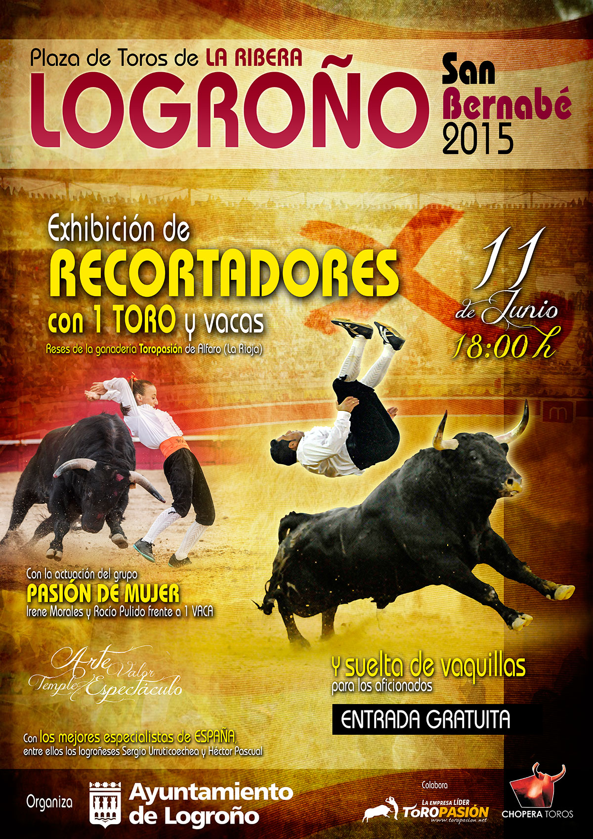 Las chicas han golpeado fuerte en el toreo a cuerpo limpio y especialmente dos nombres: Rocío Pulido e Irene Morales. Dos jóvenes que han demostrado en plazas de nivel que su torería, su valor y su pureza están al alcance de muy pocos. Las jóvenes forman parte del grupo Pasión de Mujer, que de la mano de Toropasión, recorrerá los enclaves taurinos más importantes de España en la presente temporada. Irene y Rocío, tras su paso por la plaza de toros de Las Ventas el pasado 2 de mayo, llegarán a tierras riojanas para ofrecer todo un repertorio de recortes y quiebros de primer nivel. Una vaca será su rival y ante la cual deberán demostrar la calidad que atesoran para crear un espectáculo que no dejará indiferente a nadie.
