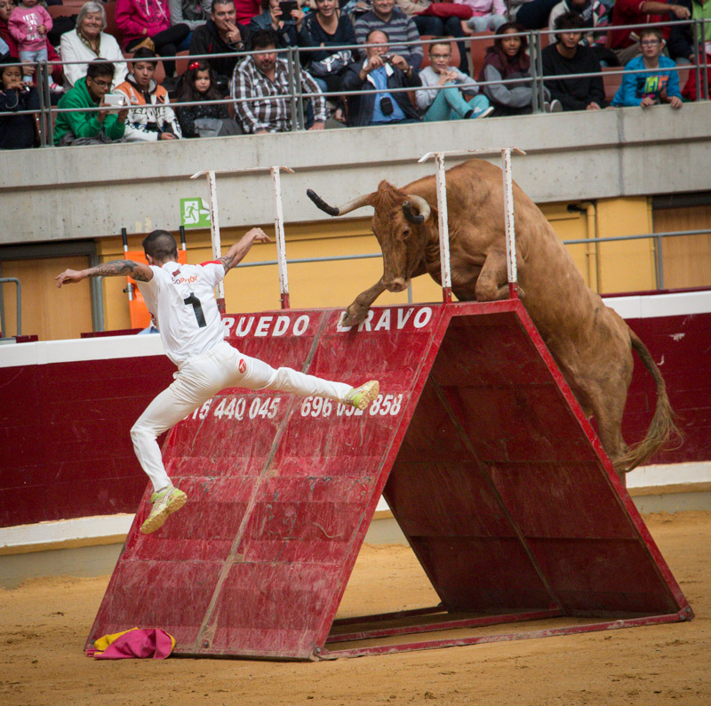 El martes 22 de septiembre será el turno de uno de los espectáculos que mayores ovaciones recogió el pasado año, una exhibición de bravura con obstáculos. Las reses más espectaculares del ganadero navarro D. José Arriazu de Ablitas pisarán el coso de La Ribera para demostrar su fuerza, su temperamento y su habilidad para subir por los diferentes obstáculos dispuestos en el ruedo (pirámide al estilo valenciano, tablado, trampa, etc.). La ganadería de Arriazu está considerada como la más importante de España y sus toros, vacas y capones son los más temidos por su fgaceta de “saltarines”. El espectáculo está garantizado con esta ganadería que ha obtenido algunos de los premios ganaderos más importantes del panorama nacional.
