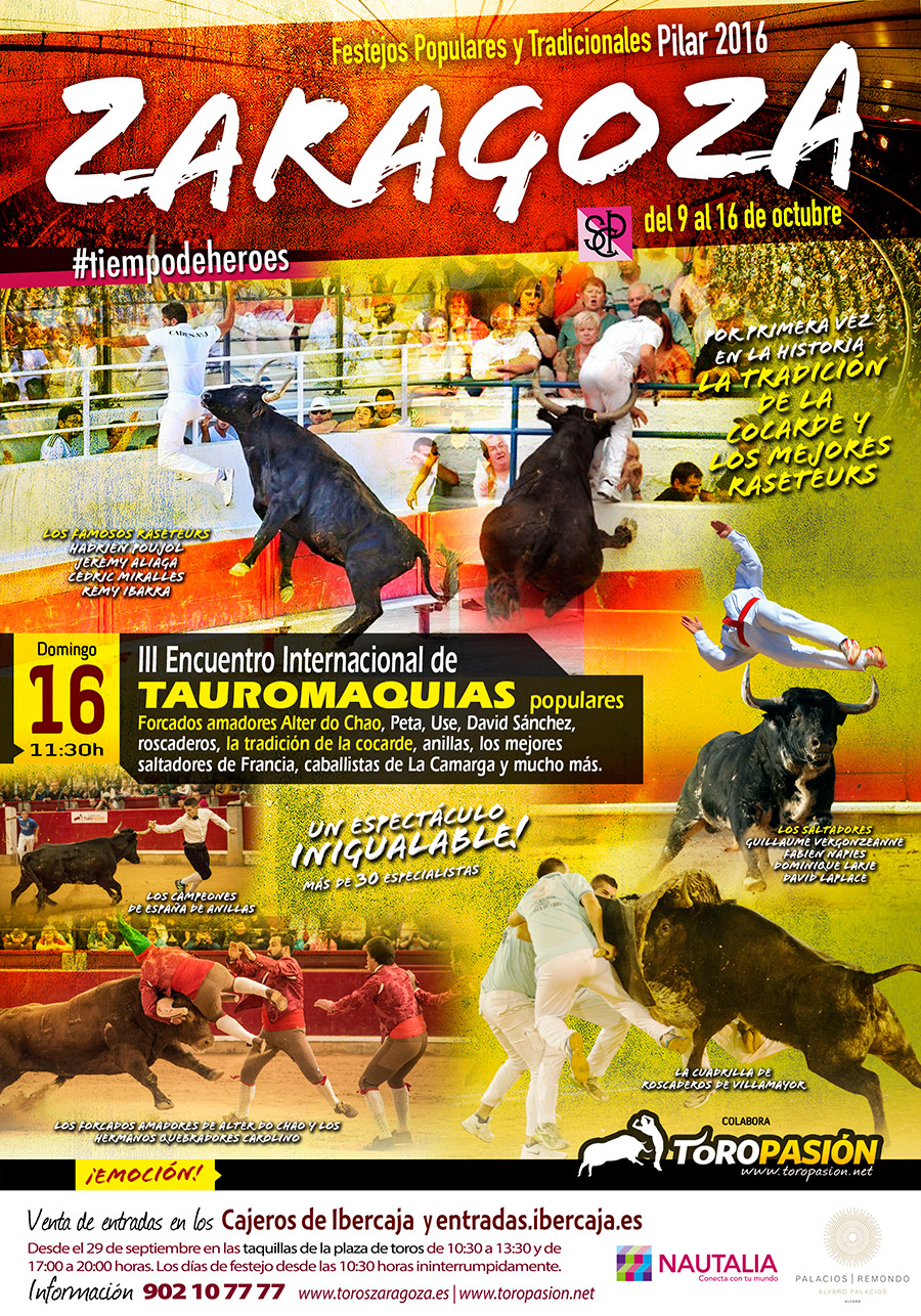 - Campeonato de España de anillas y recorte libre, encuentro de tauromaquias con toros camargueses, roscaderos y los reyes del bou al carrer platos fuertes de Zaragoza 2016 | 30 septiembre, 2016