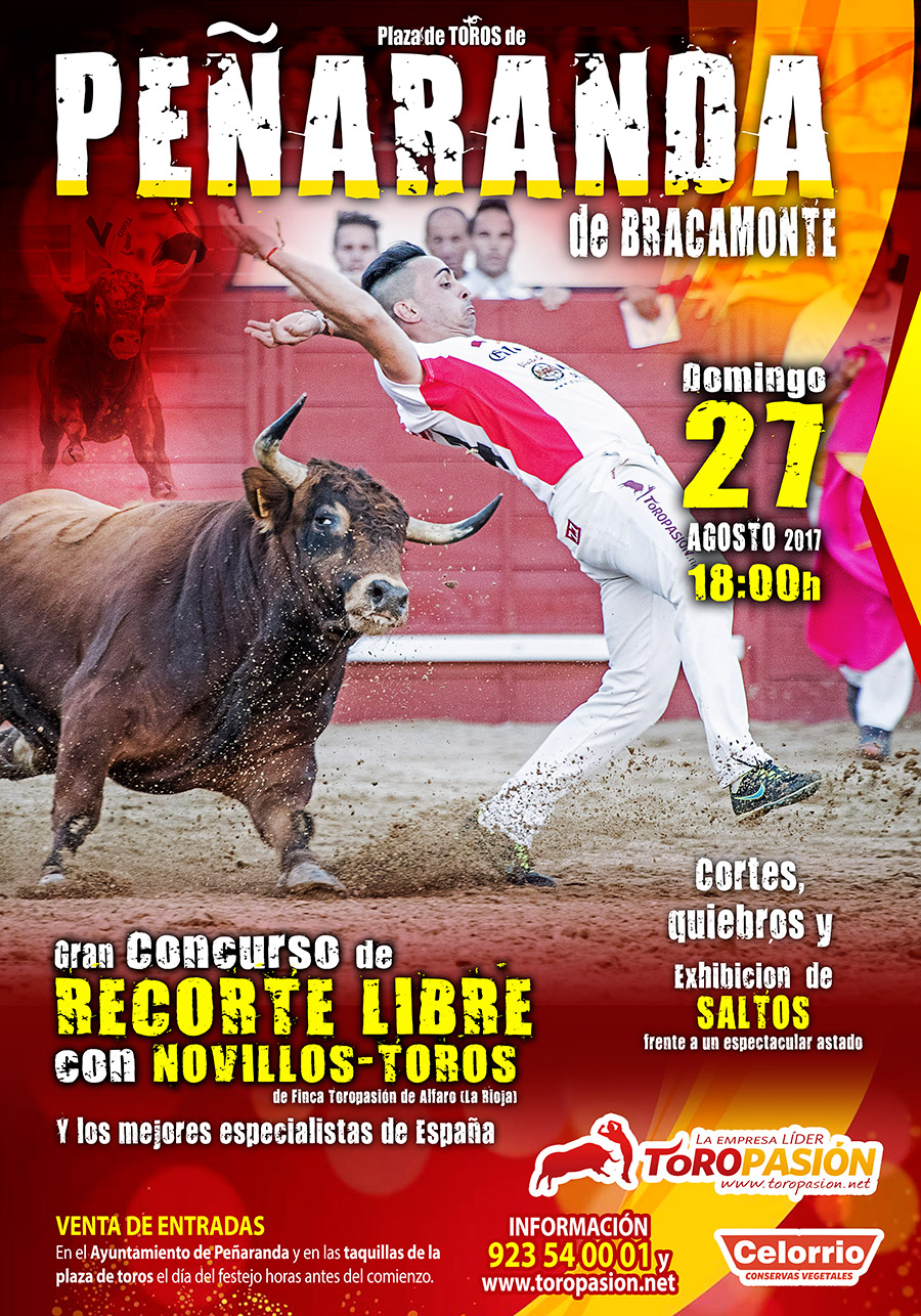 La llegada de los mejores recortadores de España a Peñaranda, el domingo 27 de agosto a las 18:00 horas, ha levantado mucha expectación y contará, un año más, con colaboración de la empresa riojana Toropasión, líder en la organización de festejos taurinos populares. Toropasión y Servicios Taurinos del Duero -empresa gestora del coso- desplazarán hasta Peñaranda a los mejores exponentes del panorama nacional, la élite del recorte, aquellos que han conseguido los hitos más importantes en el toreo a cuerpo limpio. 12 seleccionados especialistas realizarán todo tipo de cortes y acrobacias frente a las reses, en un alarde de valor, conocimientos del toro y torería.