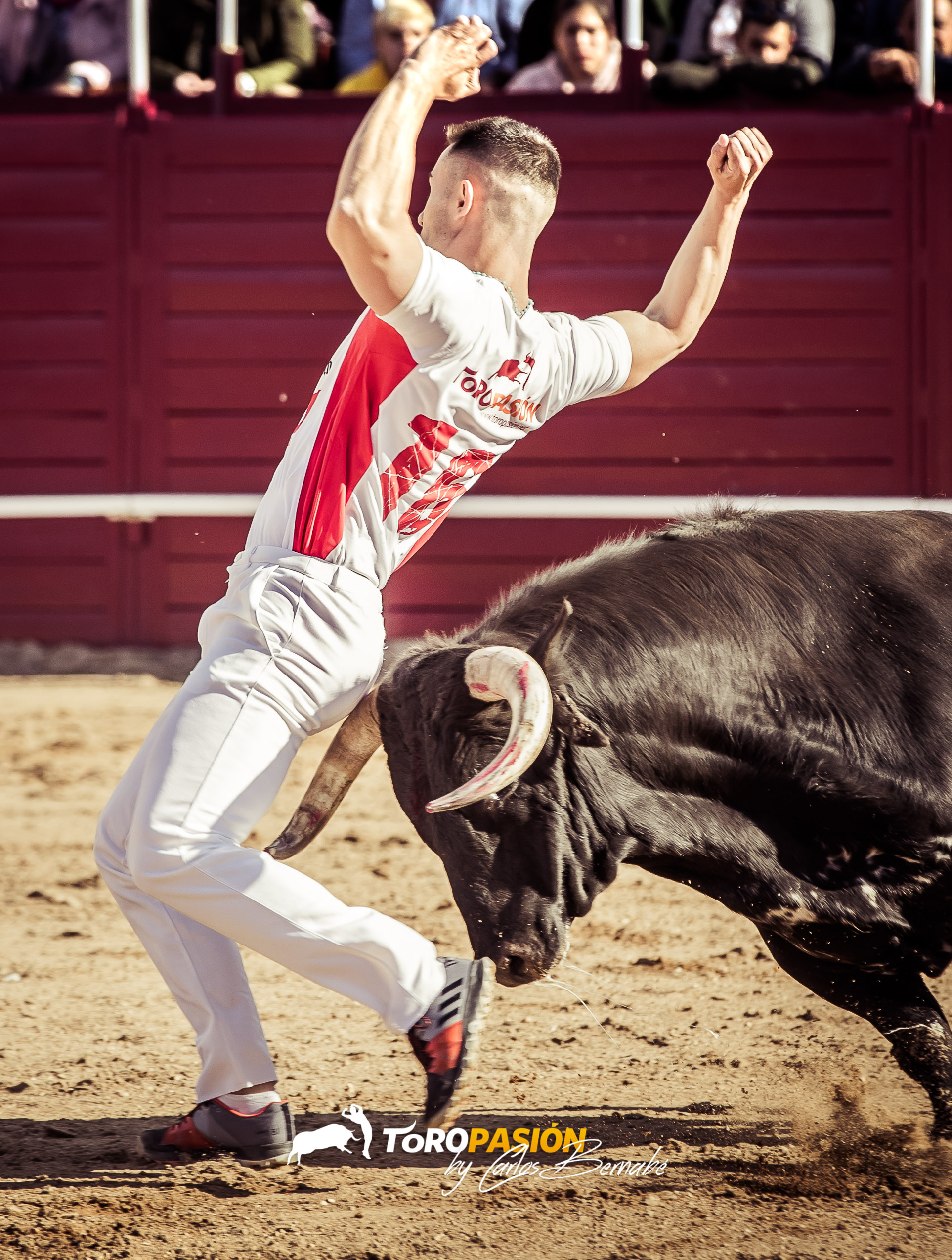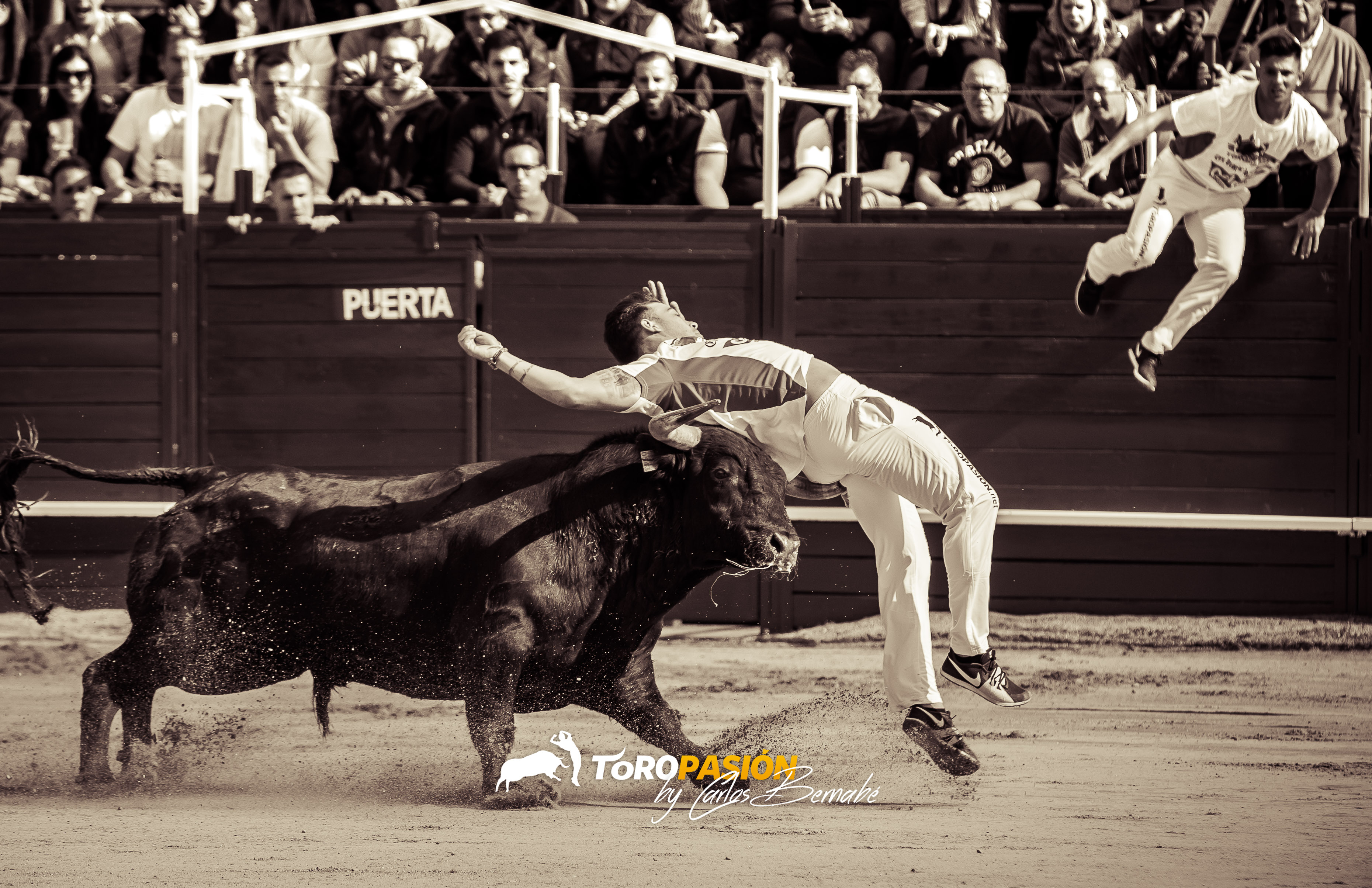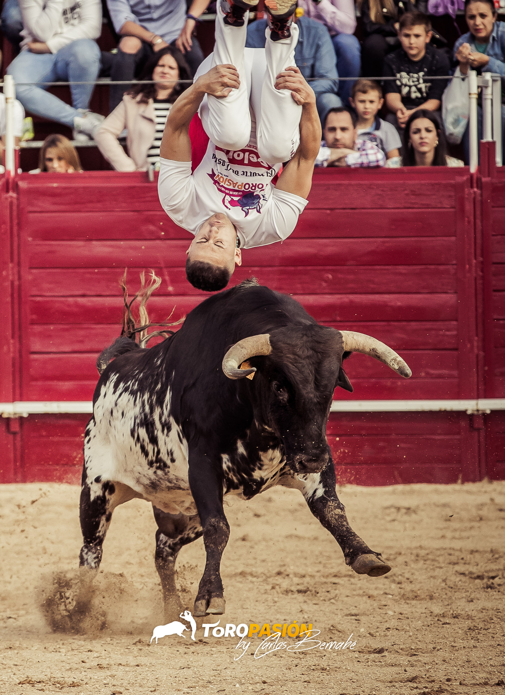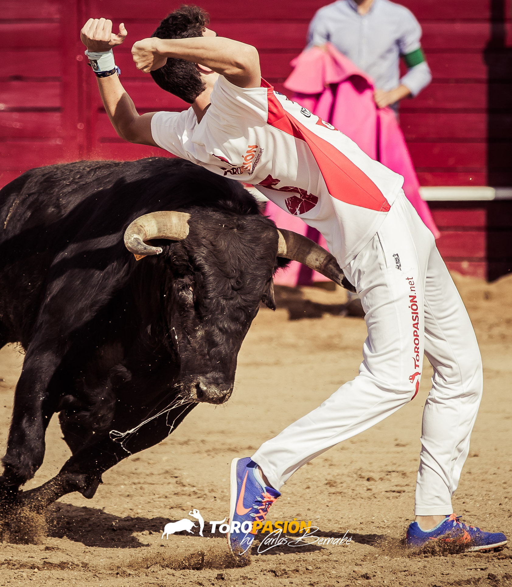 Mención especial merece Javier Manso, ‘Balotelli’, con cortes muy ajustados en sus dos novillos que se tradujeron en una segunda posición. Eso sí, fue en el sexto de la tarde cuando consiguió poner a todo el público en pie. La cuestión está en que ese era un novillo de exhibición para presenciar un duelo de altos vuelos, el que el mismo Balotelli protagonizó junto a Javier Pradanas. Salto del ángel, tirabuzones o saltos mortales formaron el repertorio de los dos especialistas que dieron cuenta de una condición física muy importante.