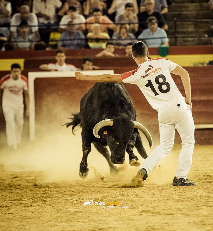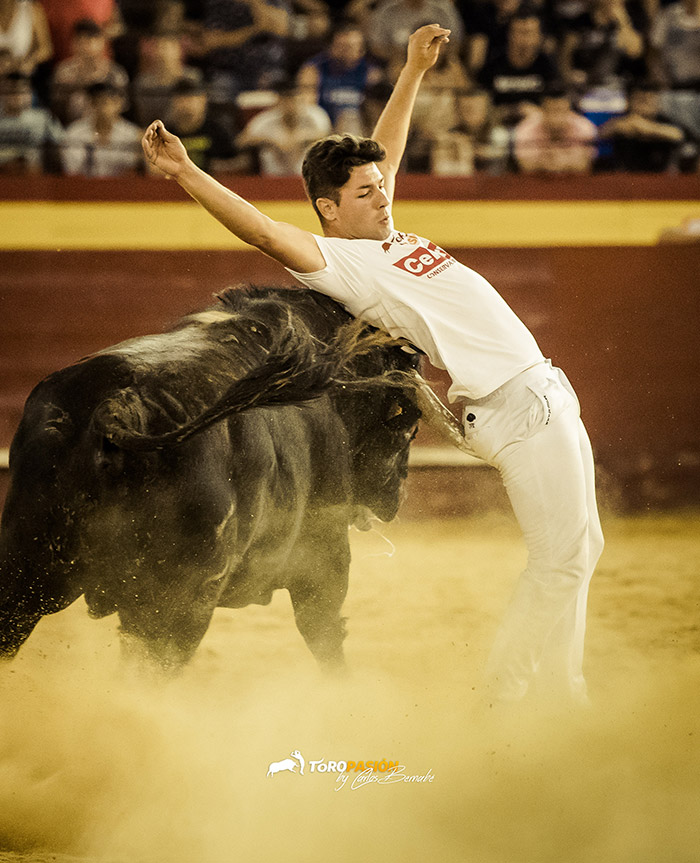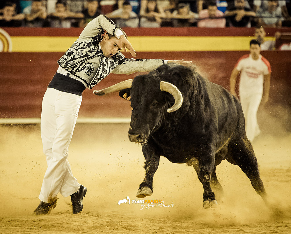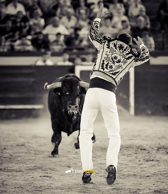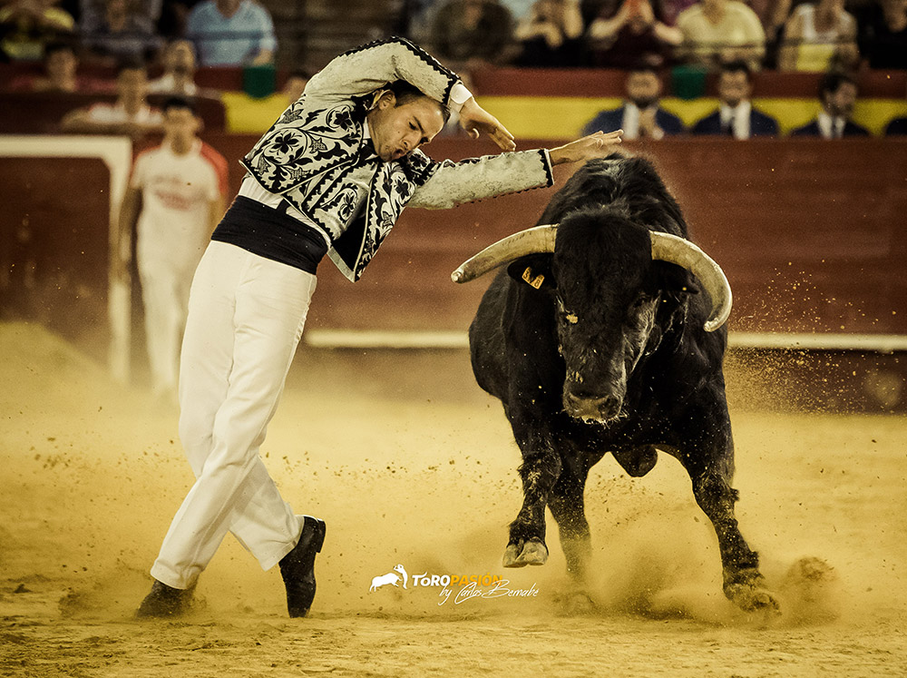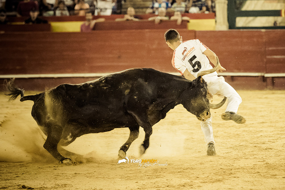 Ante un extraordinario toro de Fernando Pereira Palha, llegó el turno de la exhibición de recorte libre. Los cinco encargados de la misma, no se dejaron nada en casa, y levantaron al público de sus asientos. Tanto ‘El Peque’, como Andrés Civera pusieron rodilla en tierra para quebrar a su oponente. Cristian Blanco volvió a sentirse a gusto delante de un toro, y le recetó dos espectaculares quiebros. El valenciano Rober, pegó un milimétrico recorte y demostró su potencia física con sus saltos. Y a ‘Use’ se le vio en su salsa, recortando y saltando al de Palha en numerosas ocasiones. El toro sin embargo no se lo puso nada fácil a los forcados. Mandó a alguno de ellos a la enfermería, pero no se dieron por vencidos y finalmente se hicieron con él, en un auténtico derroche de raza.
