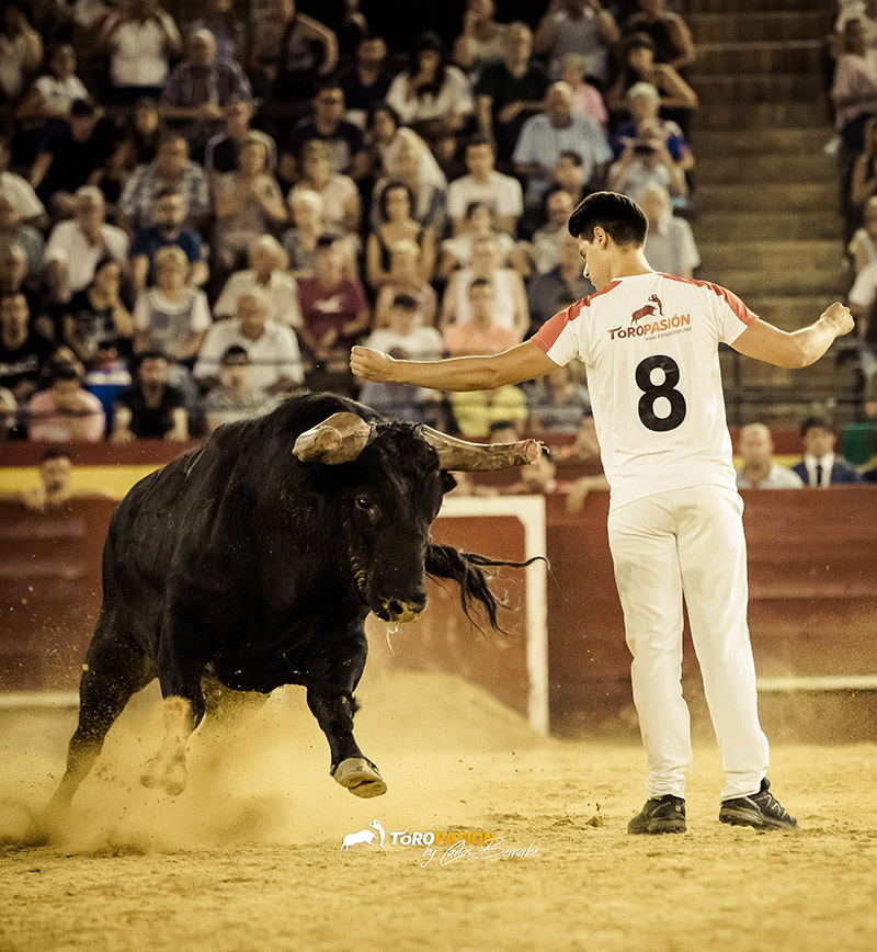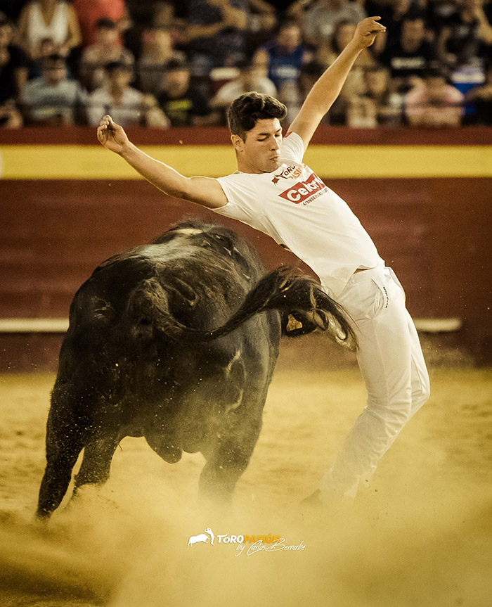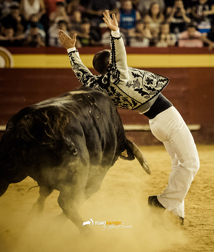 Comenzó el II Encuentro Internacional de Tauromaquias con el enfrentamiento de David Megina y Eric Egea, frente a la vaca ‘Fortuna’ de Fernando Machancoses. Ambos demostraron su conocimiento y valentía frente a una vaca que no lo puso nada fácil. Megina tiró de recursos tras las dos cogidas que sufrió Eric, y realizó dos impresionantes tirabuzones.