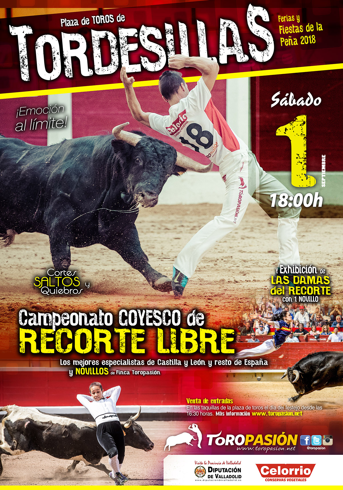 El Ayuntamiento de Tordesillas, junto a Toropasión, volverá a apostar por la tauromaquia a cuerpo limpio tras el éxito de años pasados. Por primera vez, Toropasión pondrá en marcha una fase de su prestigiosa Liga Toropasión que contará con los mejores cortadores, quebradores y saltadores del momento. Con indumentaria goyesca, saltarán al ruedo los máximos exponentes de la tauromaquia a cuerpo limpio, la tauromaquia de la emoción y la pasión.