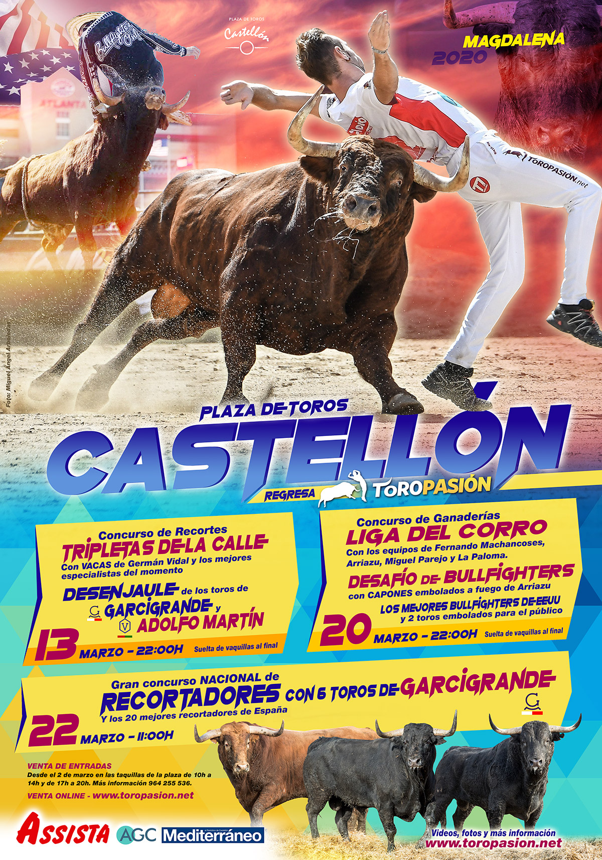 La temporada vuelve a caminar y con ella llegan dos de las ferias más importantes del año, Magdalena y Fallas. Unas ferias que tendrán a Toropasión como protagonista, ya que será la empresa encargada de diseñar los dos ciclos populares en los que pondrá sobre la mesa tres festejos de máxima calidad en cada uno y con novedades importantes como la esperada Liga del Corro o los bullfighters americanos que llegan a Castellón para enfrentarse a los temidos capones de Arriazu y con la dificultad de estar embolados a fuego.