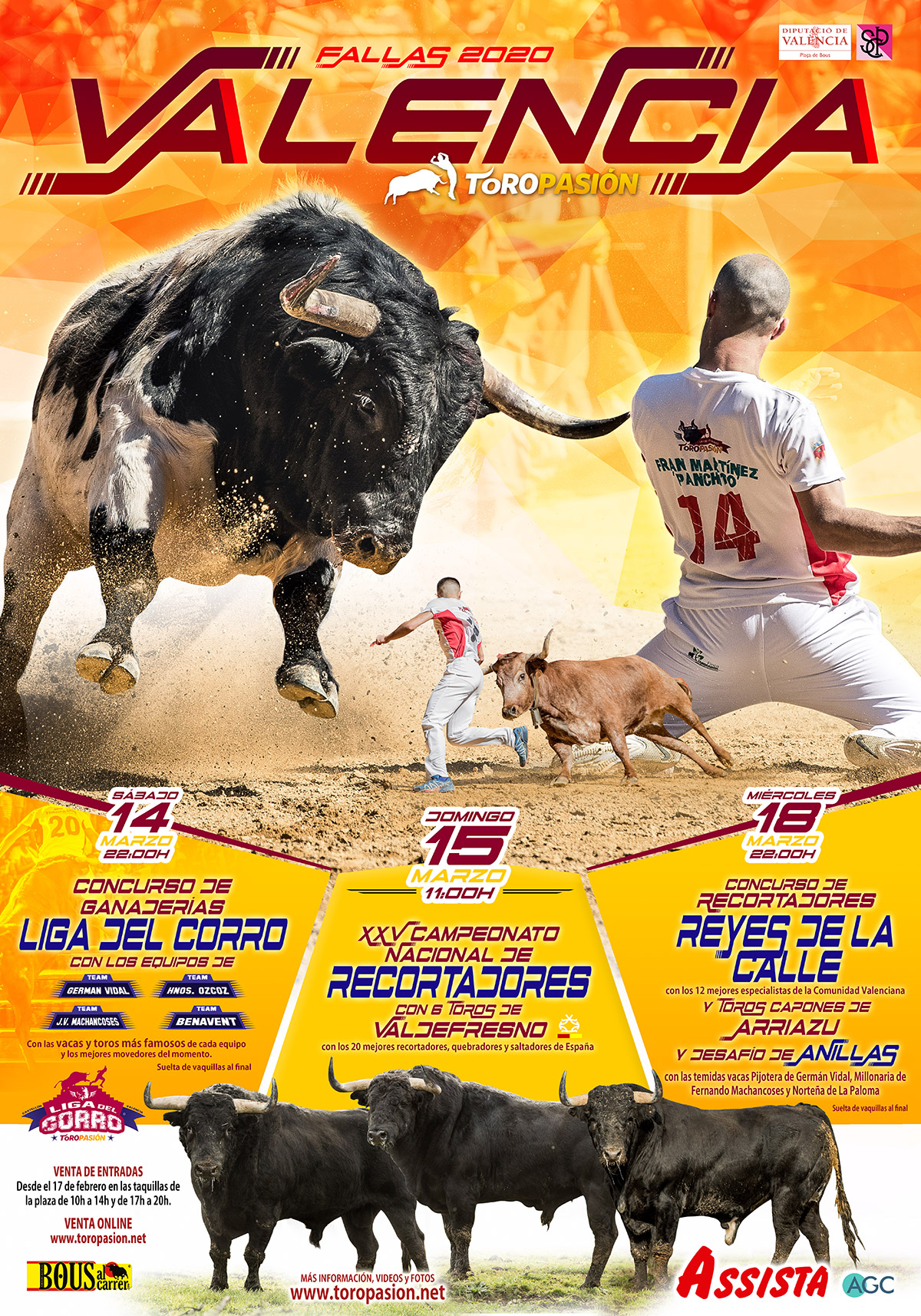 Valencia calienta motores y se prepara para la llegada de tres festejos que darán comienzo el 14 de marzo con el arranque de la Liga del Corro que contará con los equipos de Germán Vidal, José Vicente Machancoses, Hnos. Ozcoz y Benavent. Este primer peldaño de la competición pondrá en marcha el concurso ganadero más importante del mundo y contará con diferentes obstáculos en el ruedo: pirámide, tijera y entablado.