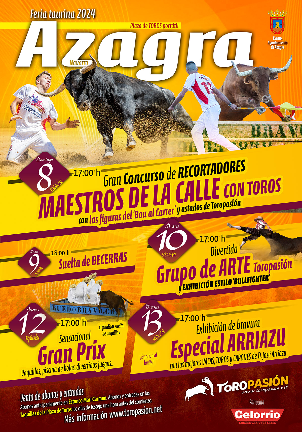 - AZAGRA (Navarra) vuelve a apostar por los mejores recortadores de toros, los toros y vacas más temidos de Arriazu, los maestros de la calle y mucho más del 8 al 13 de septiembre | 6 septiembre, 2023