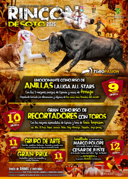 - Los mejores recortadores de España, novillada mixta, encierros, especial de bravura con las temidas reses de Arriazu y mucho más en RINCÓN DE SOTO (La Rioja) del 5 al 9 de agosto | 30 julio, 2023